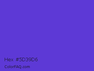 Hex #5d39d6 Color is a normal indigo color and the nearest color is Iris #5a4fcf. Hex code #5d39d6 and RGB value is rgb(93,57,214). In RGB color space, this color is composed of 36% red, 22% green, 84% blue, In CMYK color space, this color is composed of 57% cyan, 73% magenta, 0% yellow , 16% black , In HSL color space, this color has a hue angle of 254° , 66% saturation and 53% lightness.