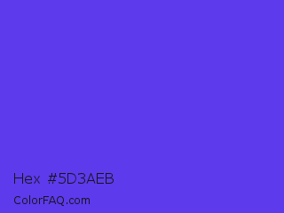 Hex #5d3aeb Color is a normal indigo color and the nearest color is Majorelle Blue #6050dc. Hex code #5d3aeb and RGB value is rgb(93,58,235). In RGB color space, this color is composed of 36% red, 23% green, 92% blue, In CMYK color space, this color is composed of 60% cyan, 75% magenta, 0% yellow , 8% black , In HSL color space, this color has a hue angle of 252° , 82% saturation and 57% lightness.