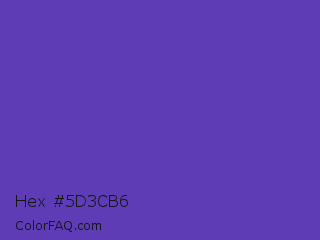 Hex #5d3cb6 Color is a normal indigo color and the nearest color is Plump Purple #5946b2. Hex code #5d3cb6 and RGB value is rgb(93,60,182). In RGB color space, this color is composed of 36% red, 24% green, 71% blue, In CMYK color space, this color is composed of 49% cyan, 67% magenta, 0% yellow , 29% black , In HSL color space, this color has a hue angle of 256° , 50% saturation and 47% lightness.