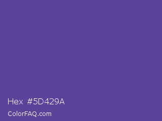 Hex #5d429a Color is a normal indigo color and the nearest color is Butterfly Bush #624e9a. Hex code #5d429a and RGB value is rgb(93,66,154). In RGB color space, this color is composed of 36% red, 26% green, 60% blue, In CMYK color space, this color is composed of 40% cyan, 57% magenta, 0% yellow , 40% black , In HSL color space, this color has a hue angle of 258° , 40% saturation and 43% lightness.