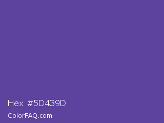 Hex #5d439d Color is a normal indigo color and the nearest color is Butterfly Bush #624e9a. Hex code #5d439d and RGB value is rgb(93,67,157). In RGB color space, this color is composed of 36% red, 26% green, 62% blue, In CMYK color space, this color is composed of 41% cyan, 57% magenta, 0% yellow , 38% black , In HSL color space, this color has a hue angle of 257° , 40% saturation and 44% lightness.
