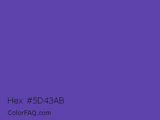 Hex #5d43ab Color is a normal indigo color and the nearest color is Plump Purple #5946b2. Hex code #5d43ab and RGB value is rgb(93,67,171). In RGB color space, this color is composed of 36% red, 26% green, 67% blue, In CMYK color space, this color is composed of 46% cyan, 61% magenta, 0% yellow , 33% black , In HSL color space, this color has a hue angle of 255° , 44% saturation and 47% lightness.