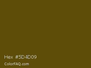 Hex #5d4d09 Color is a very dark yellow color and the nearest color is Horses Neck #604913. Hex code #5d4d09 and RGB value is rgb(93,77,9). In RGB color space, this color is composed of 36% red, 30% green, 4% blue, In CMYK color space, this color is composed of 0% cyan, 17% magenta, 90% yellow , 64% black , In HSL color space, this color has a hue angle of 49° , 82% saturation and 20% lightness.