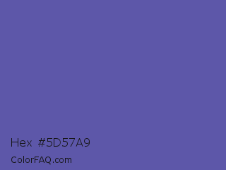 Hex #5d57a9 Color is a normal indigo color and the nearest color is Liberty #545aa7. Hex code #5d57a9 and RGB value is rgb(93,87,169). In RGB color space, this color is composed of 36% red, 34% green, 66% blue, In CMYK color space, this color is composed of 45% cyan, 49% magenta, 0% yellow , 34% black , In HSL color space, this color has a hue angle of 244° , 32% saturation and 50% lightness.