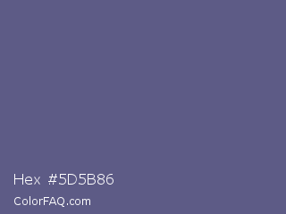 Hex #5d5b86 Color is a normal indigo color and the nearest color is Comet #5c5d75. Hex code #5d5b86 and RGB value is rgb(93,91,134). In RGB color space, this color is composed of 36% red, 36% green, 53% blue, In CMYK color space, this color is composed of 31% cyan, 32% magenta, 0% yellow , 47% black , In HSL color space, this color has a hue angle of 243° , 19% saturation and 44% lightness.