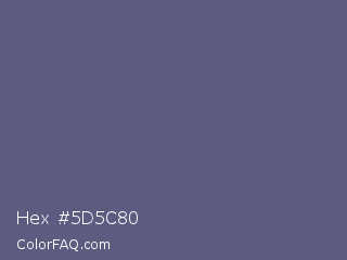 Hex #5d5c80 Color is a normal indigo color and the nearest color is Comet #5c5d75. Hex code #5d5c80 and RGB value is rgb(93,92,128). In RGB color space, this color is composed of 36% red, 36% green, 50% blue, In CMYK color space, this color is composed of 27% cyan, 28% magenta, 0% yellow , 50% black , In HSL color space, this color has a hue angle of 242° , 16% saturation and 43% lightness.
