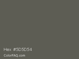 Hex #5d5d54 Color is a normal yellow color and the nearest color is Chicago #5d5c58. Hex code #5d5d54 and RGB value is rgb(93,93,84). In RGB color space, this color is composed of 36% red, 36% green, 33% blue, In CMYK color space, this color is composed of 0% cyan, 0% magenta, 10% yellow , 64% black , In HSL color space, this color has a hue angle of 60° , 5% saturation and 35% lightness.