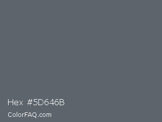 Hex #5d646b Color is a normal blue color and the nearest color is Mid Gray #5f5f6e. Hex code #5d646b and RGB value is rgb(93,100,107). In RGB color space, this color is composed of 36% red, 39% green, 42% blue, In CMYK color space, this color is composed of 13% cyan, 7% magenta, 0% yellow , 58% black , In HSL color space, this color has a hue angle of 210° , 7% saturation and 39% lightness.