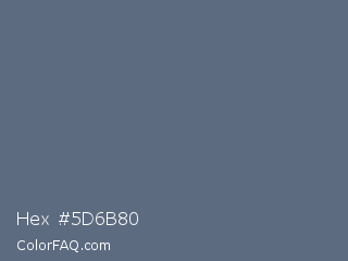 Hex #5d6b80 Color is a normal blue color and the nearest color is Paynes Grey #536878. Hex code #5d6b80 and RGB value is rgb(93,107,128). In RGB color space, this color is composed of 36% red, 42% green, 50% blue, In CMYK color space, this color is composed of 27% cyan, 16% magenta, 0% yellow , 50% black , In HSL color space, this color has a hue angle of 216° , 16% saturation and 43% lightness.