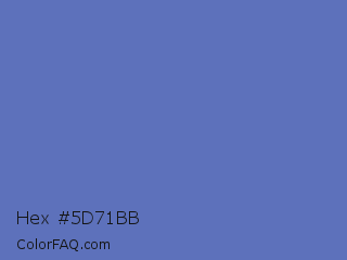 Hex #5d71bb Color is a normal blue color and the nearest color is Glaucous #6082b6. Hex code #5d71bb and RGB value is rgb(93,113,187). In RGB color space, this color is composed of 36% red, 44% green, 73% blue, In CMYK color space, this color is composed of 50% cyan, 40% magenta, 0% yellow , 27% black , In HSL color space, this color has a hue angle of 227° , 41% saturation and 55% lightness.