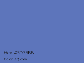 Hex #5d75bb Color is a normal blue color and the nearest color is Glaucous #6082b6. Hex code #5d75bb and RGB value is rgb(93,117,187). In RGB color space, this color is composed of 36% red, 46% green, 73% blue, In CMYK color space, this color is composed of 50% cyan, 37% magenta, 0% yellow , 27% black , In HSL color space, this color has a hue angle of 225° , 41% saturation and 55% lightness.