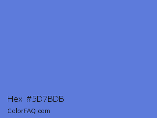 Hex #5d7bdb Color is a light blue color and the nearest color is Havelock Blue #5590d9. Hex code #5d7bdb and RGB value is rgb(93,123,219). In RGB color space, this color is composed of 36% red, 48% green, 86% blue, In CMYK color space, this color is composed of 58% cyan, 44% magenta, 0% yellow , 14% black , In HSL color space, this color has a hue angle of 226° , 64% saturation and 61% lightness.