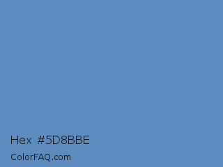 Hex #5d8bbe Color is a normal blue color and the nearest color is Silver Lake Blue #5d89ba. Hex code #5d8bbe and RGB value is rgb(93,139,190). In RGB color space, this color is composed of 36% red, 55% green, 75% blue, In CMYK color space, this color is composed of 51% cyan, 27% magenta, 0% yellow , 25% black , In HSL color space, this color has a hue angle of 212° , 43% saturation and 55% lightness.
