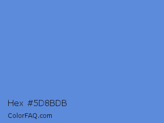 Hex #5d8bdb Color is a light blue color and the nearest color is Havelock Blue #5590d9. Hex code #5d8bdb and RGB value is rgb(93,139,219). In RGB color space, this color is composed of 36% red, 55% green, 86% blue, In CMYK color space, this color is composed of 58% cyan, 37% magenta, 0% yellow , 14% black , In HSL color space, this color has a hue angle of 218° , 64% saturation and 61% lightness.