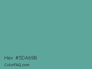 Hex #5da69b Color is a normal cyan color and the nearest color is Breaker Bay #5da19f. Hex code #5da69b and RGB value is rgb(93,166,155). In RGB color space, this color is composed of 36% red, 65% green, 61% blue, In CMYK color space, this color is composed of 44% cyan, 0% magenta, 7% yellow , 35% black , In HSL color space, this color has a hue angle of 171° , 29% saturation and 51% lightness.