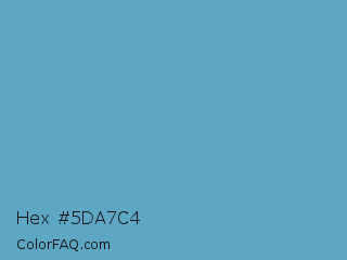 Hex #5da7c4 Color is a normal blue color and the nearest color is Fountain Blue #56b4be. Hex code #5da7c4 and RGB value is rgb(93,167,196). In RGB color space, this color is composed of 36% red, 65% green, 77% blue, In CMYK color space, this color is composed of 53% cyan, 15% magenta, 0% yellow , 23% black , In HSL color space, this color has a hue angle of 197° , 47% saturation and 57% lightness.