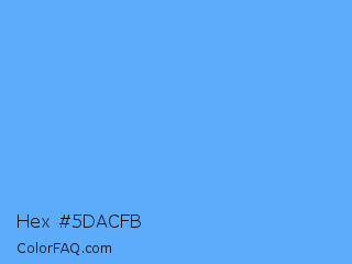 Hex #5dacfb Color is a light blue color and the nearest color is Blue Jeans #5dadec. Hex code #5dacfb and RGB value is rgb(93,172,251). In RGB color space, this color is composed of 36% red, 67% green, 98% blue, In CMYK color space, this color is composed of 63% cyan, 31% magenta, 0% yellow , 2% black , In HSL color space, this color has a hue angle of 210° , 95% saturation and 67% lightness.