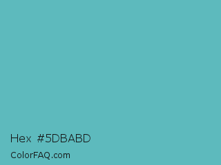 Hex #5dbabd Color is a normal cyan color and the nearest color is Fountain Blue #56b4be. Hex code #5dbabd and RGB value is rgb(93,186,189). In RGB color space, this color is composed of 36% red, 73% green, 74% blue, In CMYK color space, this color is composed of 51% cyan, 2% magenta, 0% yellow , 26% black , In HSL color space, this color has a hue angle of 182° , 42% saturation and 55% lightness.