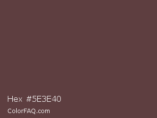 Hex #5e3e40 Color is a normal red color and the nearest color is Kabul #5e483e. Hex code #5e3e40 and RGB value is rgb(94,62,64). In RGB color space, this color is composed of 37% red, 24% green, 25% blue, In CMYK color space, this color is composed of 0% cyan, 34% magenta, 32% yellow , 63% black , In HSL color space, this color has a hue angle of 356° , 21% saturation and 31% lightness.