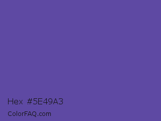 Hex #5e49a3 Color is a normal indigo color and the nearest color is Butterfly Bush #624e9a. Hex code #5e49a3 and RGB value is rgb(94,73,163). In RGB color space, this color is composed of 37% red, 29% green, 64% blue, In CMYK color space, this color is composed of 42% cyan, 55% magenta, 0% yellow , 36% black , In HSL color space, this color has a hue angle of 254° , 38% saturation and 46% lightness.
