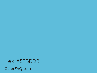 Hex #5ebddb Color is a light blue color and the nearest color is Viking #64ccdb. Hex code #5ebddb and RGB value is rgb(94,189,219). In RGB color space, this color is composed of 37% red, 74% green, 86% blue, In CMYK color space, this color is composed of 57% cyan, 14% magenta, 0% yellow , 14% black , In HSL color space, this color has a hue angle of 194° , 63% saturation and 61% lightness.