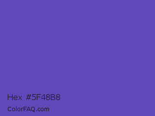 Hex #5f48b8 Color is a normal indigo color and the nearest color is Plump Purple #5946b2. Hex code #5f48b8 and RGB value is rgb(95,72,184). In RGB color space, this color is composed of 37% red, 28% green, 72% blue, In CMYK color space, this color is composed of 48% cyan, 61% magenta, 0% yellow , 28% black , In HSL color space, this color has a hue angle of 252° , 44% saturation and 50% lightness.