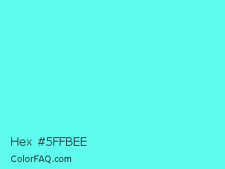 Hex #5ffbee Color is a light cyan color and the nearest color is Electric Blue #7df9ff. Hex code #5ffbee and RGB value is rgb(95,251,238). In RGB color space, this color is composed of 37% red, 98% green, 93% blue, In CMYK color space, this color is composed of 62% cyan, 0% magenta, 5% yellow , 2% black , In HSL color space, this color has a hue angle of 175° , 95% saturation and 68% lightness.