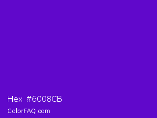Hex #6008cb Color is a normal violet color and the nearest color is Purple Heart Crayola #652dc1. Hex code #6008cb and RGB value is rgb(96,8,203). In RGB color space, this color is composed of 38% red, 3% green, 80% blue, In CMYK color space, this color is composed of 53% cyan, 96% magenta, 0% yellow , 20% black , In HSL color space, this color has a hue angle of 267° , 92% saturation and 41% lightness.