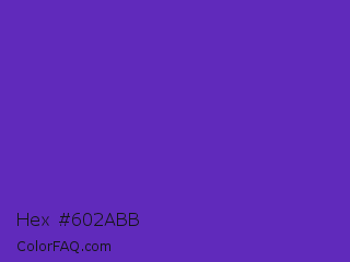 Hex #602abb Color is a normal violet color and the nearest color is Purple Heart Crayola #652dc1. Hex code #602abb and RGB value is rgb(96,42,187). In RGB color space, this color is composed of 38% red, 16% green, 73% blue, In CMYK color space, this color is composed of 49% cyan, 78% magenta, 0% yellow , 27% black , In HSL color space, this color has a hue angle of 262° , 63% saturation and 45% lightness.