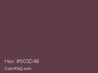 Hex #603d48 Color is a normal rose color and the nearest color is Deep Tuscan Red #66424d. Hex code #603d48 and RGB value is rgb(96,61,72). In RGB color space, this color is composed of 38% red, 24% green, 28% blue, In CMYK color space, this color is composed of 0% cyan, 36% magenta, 25% yellow , 62% black , In HSL color space, this color has a hue angle of 341° , 22% saturation and 31% lightness.
