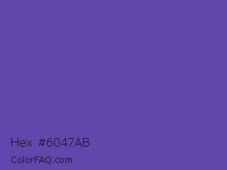 Hex #6047ab Color is a normal indigo color and the nearest color is Plump Purple #5946b2. Hex code #6047ab and RGB value is rgb(96,71,171). In RGB color space, this color is composed of 38% red, 28% green, 67% blue, In CMYK color space, this color is composed of 44% cyan, 58% magenta, 0% yellow , 33% black , In HSL color space, this color has a hue angle of 255° , 41% saturation and 47% lightness.