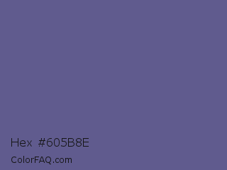 Hex #605b8e Color is a normal indigo color and the nearest color is Dark Blue Gray #666699. Hex code #605b8e and RGB value is rgb(96,91,142). In RGB color space, this color is composed of 38% red, 36% green, 56% blue, In CMYK color space, this color is composed of 32% cyan, 36% magenta, 0% yellow , 44% black , In HSL color space, this color has a hue angle of 246° , 22% saturation and 46% lightness.