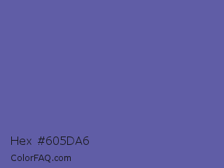 Hex #605da6 Color is a normal indigo color and the nearest color is Scampi #675fa6. Hex code #605da6 and RGB value is rgb(96,93,166). In RGB color space, this color is composed of 38% red, 36% green, 65% blue, In CMYK color space, this color is composed of 42% cyan, 44% magenta, 0% yellow , 35% black , In HSL color space, this color has a hue angle of 242° , 29% saturation and 51% lightness.