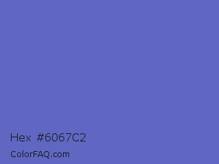Hex #6067c2 Color is a normal blue color and the nearest color is Indigo #4f69c6. Hex code #6067c2 and RGB value is rgb(96,103,194). In RGB color space, this color is composed of 38% red, 40% green, 76% blue, In CMYK color space, this color is composed of 51% cyan, 47% magenta, 0% yellow , 24% black , In HSL color space, this color has a hue angle of 236° , 45% saturation and 57% lightness.