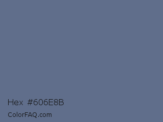 Hex #606e8b Color is a normal blue color and the nearest color is Dark Blue Gray #666699. Hex code #606e8b and RGB value is rgb(96,110,139). In RGB color space, this color is composed of 38% red, 43% green, 55% blue, In CMYK color space, this color is composed of 31% cyan, 21% magenta, 0% yellow , 45% black , In HSL color space, this color has a hue angle of 220° , 18% saturation and 46% lightness.