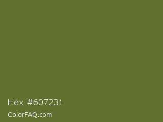Hex #607231 Color is a normal lime color and the nearest color is Dark Olive Green #556b2f. Hex code #607231 and RGB value is rgb(96,114,49). In RGB color space, this color is composed of 38% red, 45% green, 19% blue, In CMYK color space, this color is composed of 16% cyan, 0% magenta, 57% yellow , 55% black , In HSL color space, this color has a hue angle of 77° , 40% saturation and 32% lightness.