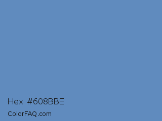 Hex #608bbe Color is a normal blue color and the nearest color is Silver Lake Blue #5d89ba. Hex code #608bbe and RGB value is rgb(96,139,190). In RGB color space, this color is composed of 38% red, 55% green, 75% blue, In CMYK color space, this color is composed of 49% cyan, 27% magenta, 0% yellow , 25% black , In HSL color space, this color has a hue angle of 213° , 42% saturation and 56% lightness.