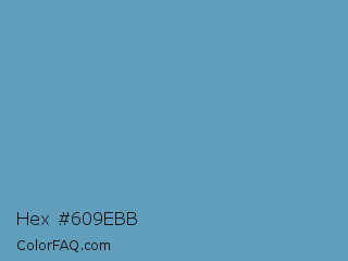 Hex #609ebb Color is a normal blue color and the nearest color is Hippie Blue #589aaf. Hex code #609ebb and RGB value is rgb(96,158,187). In RGB color space, this color is composed of 38% red, 62% green, 73% blue, In CMYK color space, this color is composed of 49% cyan, 16% magenta, 0% yellow , 27% black , In HSL color space, this color has a hue angle of 199° , 40% saturation and 55% lightness.