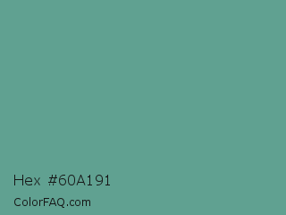 Hex #60a191 Color is a normal cyan color and the nearest color is Polished Pine #5da493. Hex code #60a191 and RGB value is rgb(96,161,145). In RGB color space, this color is composed of 38% red, 63% green, 57% blue, In CMYK color space, this color is composed of 40% cyan, 0% magenta, 10% yellow , 37% black , In HSL color space, this color has a hue angle of 165° , 26% saturation and 50% lightness.