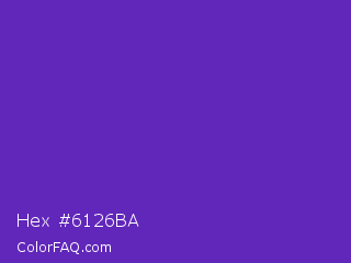 Hex #6126ba Color is a normal violet color and the nearest color is Purple Heart Crayola #652dc1. Hex code #6126ba and RGB value is rgb(97,38,186). In RGB color space, this color is composed of 38% red, 15% green, 73% blue, In CMYK color space, this color is composed of 48% cyan, 80% magenta, 0% yellow , 27% black , In HSL color space, this color has a hue angle of 264° , 66% saturation and 44% lightness.