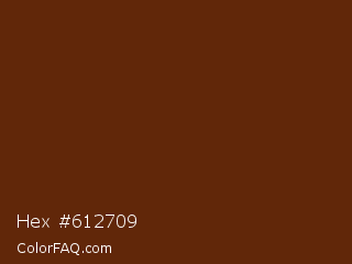 Hex #612709 Color is a very dark orange color and the nearest color is Seal Brown #59260b. Hex code #612709 and RGB value is rgb(97,39,9). In RGB color space, this color is composed of 38% red, 15% green, 4% blue, In CMYK color space, this color is composed of 0% cyan, 60% magenta, 91% yellow , 62% black , In HSL color space, this color has a hue angle of 20° , 83% saturation and 21% lightness.
