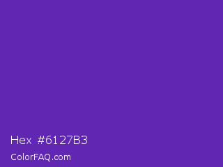Hex #6127b3 Color is a normal violet color and the nearest color is Purple Heart Crayola #652dc1. Hex code #6127b3 and RGB value is rgb(97,39,179). In RGB color space, this color is composed of 38% red, 15% green, 70% blue, In CMYK color space, this color is composed of 46% cyan, 78% magenta, 0% yellow , 30% black , In HSL color space, this color has a hue angle of 265° , 64% saturation and 43% lightness.