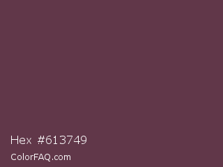 Hex #613749 Color is a dark rose color and the nearest color is Wine Dregs #673147. Hex code #613749 and RGB value is rgb(97,55,73). In RGB color space, this color is composed of 38% red, 22% green, 29% blue, In CMYK color space, this color is composed of 0% cyan, 43% magenta, 25% yellow , 62% black , In HSL color space, this color has a hue angle of 334° , 28% saturation and 30% lightness.