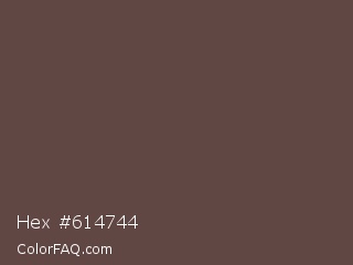 Hex #614744 Color is a normal red color and the nearest color is Rose Ebony #674846. Hex code #614744 and RGB value is rgb(97,71,68). In RGB color space, this color is composed of 38% red, 28% green, 27% blue, In CMYK color space, this color is composed of 0% cyan, 27% magenta, 30% yellow , 62% black , In HSL color space, this color has a hue angle of 6° , 18% saturation and 32% lightness.