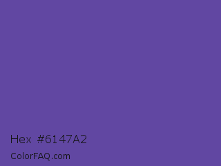 Hex #6147a2 Color is a normal indigo color and the nearest color is Butterfly Bush #624e9a. Hex code #6147a2 and RGB value is rgb(97,71,162). In RGB color space, this color is composed of 38% red, 28% green, 64% blue, In CMYK color space, this color is composed of 40% cyan, 56% magenta, 0% yellow , 36% black , In HSL color space, this color has a hue angle of 257° , 39% saturation and 46% lightness.
