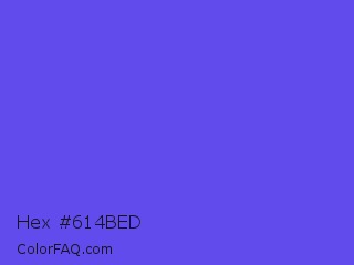 Hex #614bed Color is a light indigo color and the nearest color is Majorelle Blue #6050dc. Hex code #614bed and RGB value is rgb(97,75,237). In RGB color space, this color is composed of 38% red, 29% green, 93% blue, In CMYK color space, this color is composed of 59% cyan, 68% magenta, 0% yellow , 7% black , In HSL color space, this color has a hue angle of 248° , 82% saturation and 61% lightness.