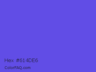 Hex #614de6 Color is a normal indigo color and the nearest color is Majorelle Blue #6050dc. Hex code #614de6 and RGB value is rgb(97,77,230). In RGB color space, this color is composed of 38% red, 30% green, 90% blue, In CMYK color space, this color is composed of 58% cyan, 67% magenta, 0% yellow , 10% black , In HSL color space, this color has a hue angle of 248° , 75% saturation and 60% lightness.