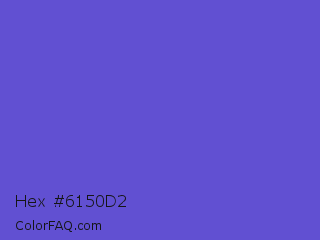 Hex #6150d2 Color is a normal indigo color and the nearest color is Iris #5a4fcf. Hex code #6150d2 and RGB value is rgb(97,80,210). In RGB color space, this color is composed of 38% red, 31% green, 82% blue, In CMYK color space, this color is composed of 54% cyan, 62% magenta, 0% yellow , 18% black , In HSL color space, this color has a hue angle of 248° , 59% saturation and 57% lightness.