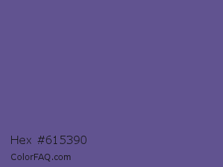Hex #615390 Color is a normal indigo color and the nearest color is Butterfly Bush #624e9a. Hex code #615390 and RGB value is rgb(97,83,144). In RGB color space, this color is composed of 38% red, 33% green, 56% blue, In CMYK color space, this color is composed of 33% cyan, 42% magenta, 0% yellow , 44% black , In HSL color space, this color has a hue angle of 254° , 27% saturation and 45% lightness.