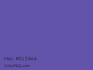Hex #6154aa Color is a normal indigo color and the nearest color is Scampi #675fa6. Hex code #6154aa and RGB value is rgb(97,84,170). In RGB color space, this color is composed of 38% red, 33% green, 67% blue, In CMYK color space, this color is composed of 43% cyan, 51% magenta, 0% yellow , 33% black , In HSL color space, this color has a hue angle of 249° , 34% saturation and 50% lightness.